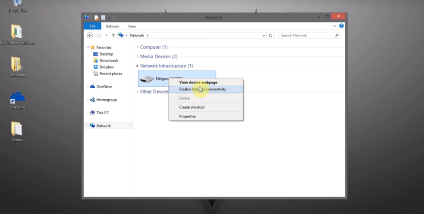 Now that you know which port you need, along with the extension, the real work can begin. First, go to your file explorer, navigate to 'network', and right-click on your router. At the top, there is an option to go to the router's webpage. Click on it.